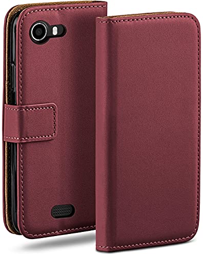 MoEx Custodia a Portafoglio per Wiko Lenny, Custodia per Cellulare con Tasca per schede e Carte Credito, Protezione a 360°, in Pelle vegana, Maroon-Red