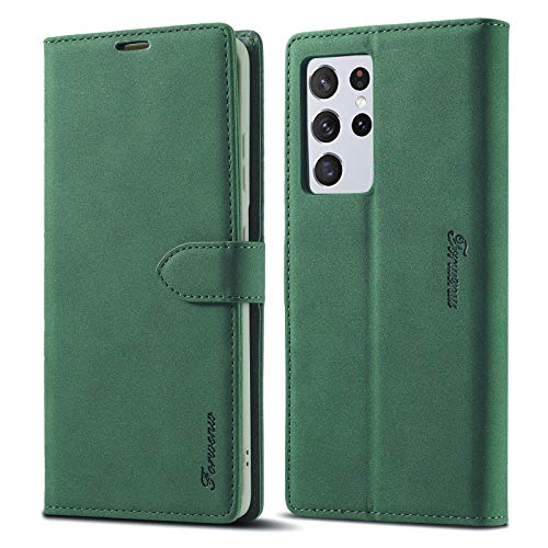 Custodia A Portafoglio LOLFZ Per Samsung Galaxy S21 Ultra 5G, Custodia In Pelle Vintage Titolare Carta Cavalletto Chiusura Magnetica Flip Case Cover Per Samsung S21 Ultra - Verde