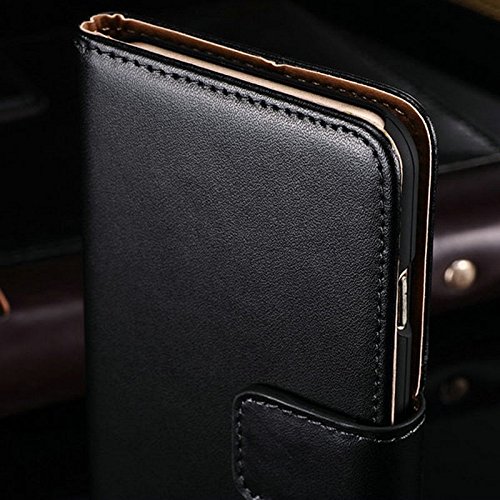 Custodia a portafoglio in vera pelle per iPhone, esterno nero, interno marrone, custodia sottile + 2 pellicole protettive per display Retina, Pelle, Black, iPhone 6S/6