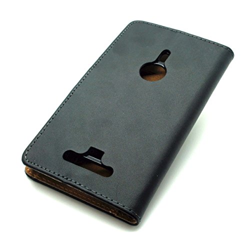 Custodia a portafoglio in pelle nera premium,con supporto,per Nokia Lumia 925