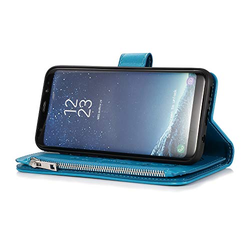 Custodia a Portafoglio UEEBAI per Samsung Galaxy S8, PU Custodia a Portafoglio con Chiusura Magnetica a Forma di Fiore con Cerniera Custodia a cavalletto per Custodia Antiurto - Blu