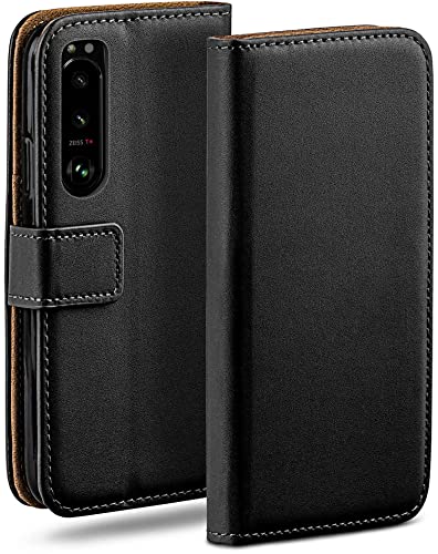 Moex Custodia a portafoglio per Sony Xperia 5 III, custodia per cellulare con tasca per schede e carte credito, protezione a 360°, in pelle vegana, Profondo - Nero