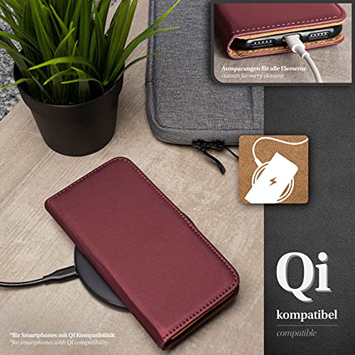 MoEx Custodia a Portafoglio per Sony Xperia Z3 Compact, Custodia per Cellulare con Tasca per schede e Carte Credito, Protezione a 360°, in Pelle vegana, Maroon-Red