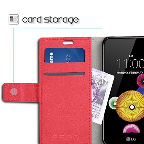 SLEO Custodia per LG K4 2016, [Premium Portafoglio Protettiva] Wallet Cover per LG K4 2016, 2-Scheda Slot, [PU Pelle] Morbido Impermeabile Antipolvere Protezione - Rosso