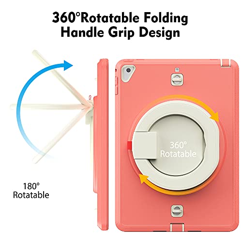Custodia protettiva per iPad 2017/2018 9,7" Triple Screen Protector Robusta e antiurto Custodia protettiva con supporto girevole pieghevole a 360°, beige polvere rosso