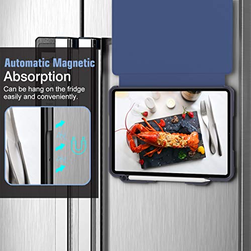 3 SUPPORTI INCORPORATI- Custodia per Tablet realizzata con la copertina ripiegabile può essere utilizzata come supporto del tablet a 9 inclinazioni, mentre il supporto magnetico e possibile attaccare il tablet su ogni superficie metallica. La custodia con il porta penna integrato assicura la il trasporto della penna più comodo e protetta.