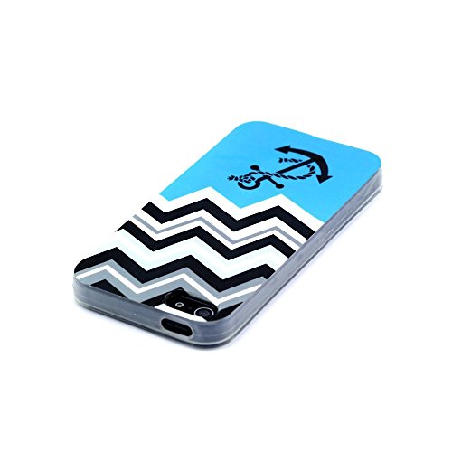 Custodia protettiva compatibile con Apple iPhone 5 (5S, SE) cover custodia in silicone TPU, con ossa marine e pesci, ancorare / wave modello (bianco, nero, blu)