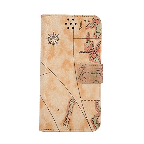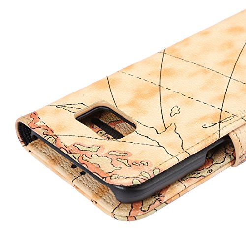 Custodia protettiva compatibile con Samsung Galaxy S7 (G930) borsa in ecopelle, chiusura magnetica laterale, stand - con mappa del paese, mappa del mondo, mappe progettare look retrò / usato (beige, marrone)