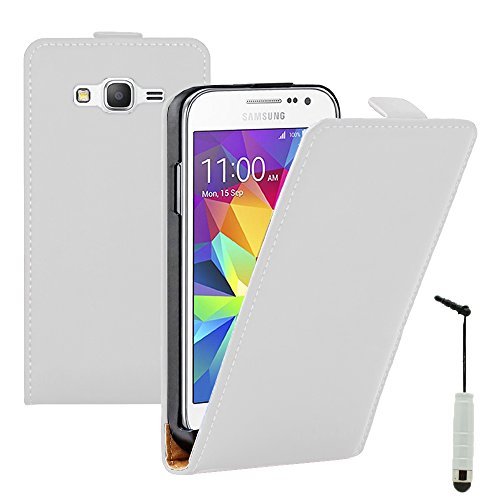 Custodia Protettiva Cover cuoio PU Vero per Samsung Galaxy Core Prime SM-G360F/ 4G SM-G361F - BIANCO + mini stilo