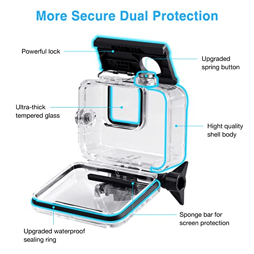 Custodia Protettiva Impermeabile per GoPro Hero 9/10/11, 60m Custodia Subacque Accessori Include Supporti Viti e 12 Inserti Antiappannamento per GoPro Hero 9/10/11 Black Fotocamera Digitale