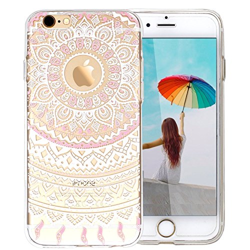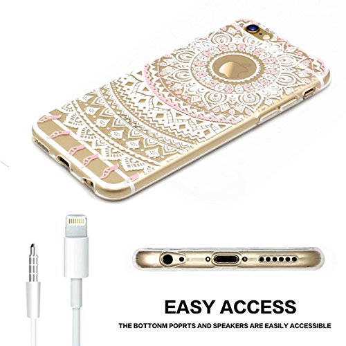 3H, custodia protettiva per iPhone 6 e 6S, elastica, trasparente, ad alta definizione, in silicone e in gel di poliuretano termoplastico, anti urto, PLASTICA, White and Pink Tribal Mandala, iPhone 5/5S/5SE