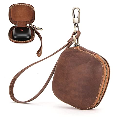 Custodia Protettiva in Vera Pelle per 2021 New Beats Fit Pro, Cover Protettiva per Auricolari Bluetooth con Cordino e Portachiavi, Portamonete Custodia in Pelle di Stoccaggio per Mini Oggetti Brown