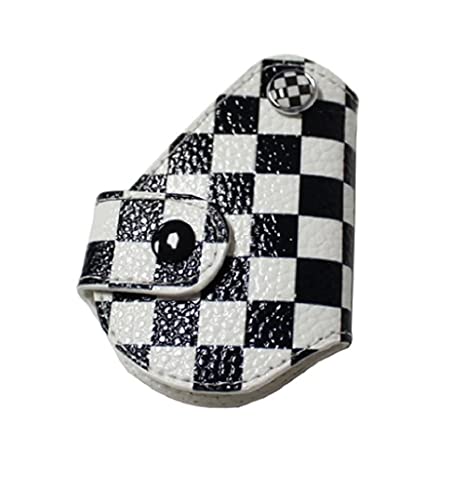 Custodia protettiva per portachiavi in vera pelle compatibile con Mini Cooper S Clubman Countryman Cars R55 R56 R57 R58 R59 R60 R61 F56 (bandiera nera bianca a scacchi)