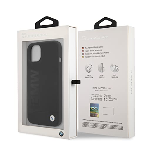 BMW Custodia protettiva in silicone per iPhone 13" All Black, liscia e antigraffio con facile scatto, assorbimento degli urti e logo firma