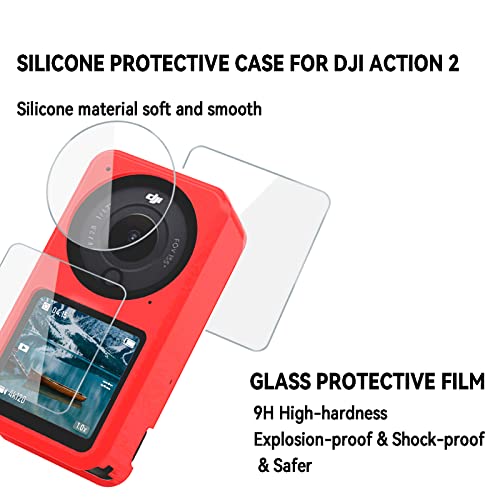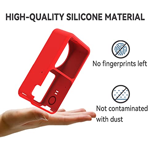 O'woda Custodia Protettiva in Silicone + Film in Vetro Temperato per DJI Action 2 Dual-Screen Combo Copertura Resistente ai Graffi Accessori per Fotocamera Sportiva (Rosso)