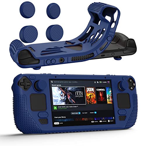 Custodia protettiva per Steam Deck, AAJL in silicone ispessito con 4 tappi basculanti con silicone spesso protezione completa, assorbimento degli urti e design antigraffio, può stare in piedi (blu)