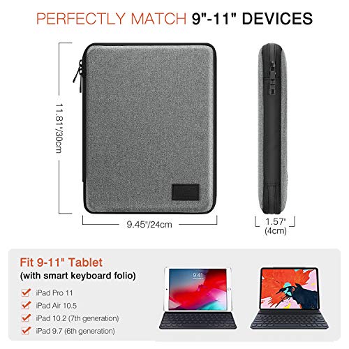 MoKo Custodia Protettiva per Tablet, Compatibile con Galaxy Tab S8 11", iPad 9a Gen 10.2", iPad PRO 11 2021, iPad 8a Gen 10.2, iPad Air 4 10.9 da 9-11 Pollici con Chiusura a Cerniera - Grigio Chiaro