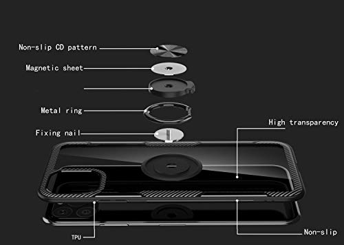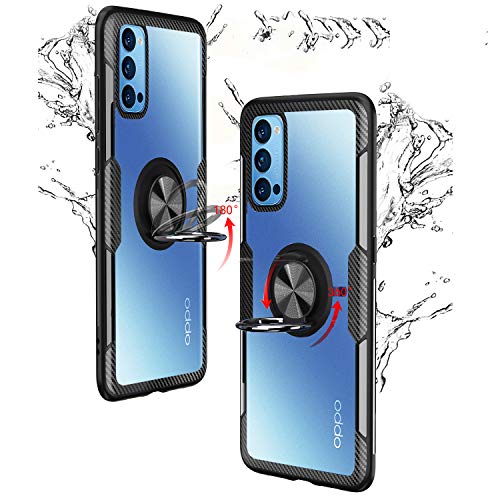 Custodia per OPPO Reno4 Pro 5G - Duro Acrilico Trasparente Resistente ai Graffi [Supporto ad Anello Rotante] [Adsorbimento Magnetico Applicabile] (Reno 4 Pro, Nero)