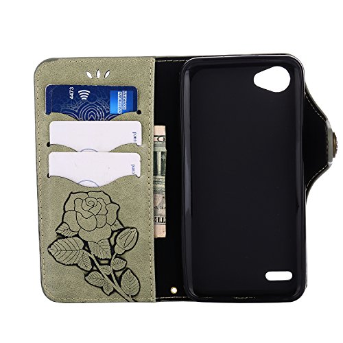 COZY HUT LG Q6 Custodia, Retro Elegant Rose Design Magnetic Flip Antiurto Protettivo Stand Protective Custodie Portafoglio Libro per LG Q6 - Rose verdi chiare