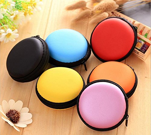 Custodia rigida in EVA con chiusura lampo, 6 pezzi, con chiusura a cerniera, forma rotonda, custodia rigida in EVA per auricolari, auricolari, cavo USB, cuffie con cavo Bluetooth