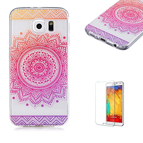 Custodia rigida per Samsung Galaxy S6 resistente ai graffi, custodia in silicone morbido e flessibile (TPU), con doppio strato protettivo antiurto, trasparente, inclusa pellicola protettiva Mandala,Heißes Rosa Samsung Galaxy S6