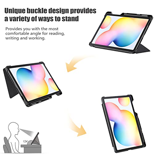 Protezione completa: Realizzato in resistente pelle PU e retro con custodia rigida in PC, la resistente custodia rigida in PC all'interno può fissare il vostro iPad e proteggere la copertura posteriore e quattro angoli per proteggere il vostro tablet Samsung Galaxy Tab S6 Lite da cadute e graffi al massimo La superficie è morbida e setosa.
