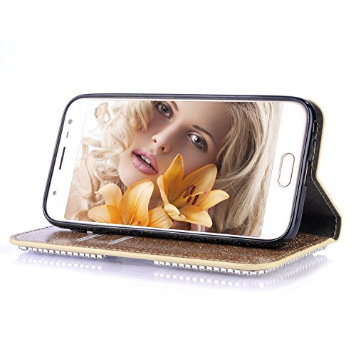 Custodia per Samsung Galaxy J7 2016 Brillantini Farfalla Portafoglio, Girlyard Flip Wallet Case Cover Full Body Protezione in Pelle PU Antiurto Supporto / Chiusura Magnetica / Porta Carte Bumper a Libro per Samsung Galaxy J7 2016 J710 (Oro Gold)