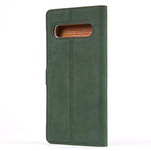 Custodia Samsung Galaxy S10 5G Compact di Custodia a Portafoglio in Pelle Nubuck con Fessura per Carte di Credito e Banconote - (Verde Scuro)