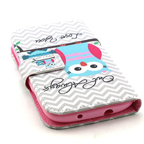 Custodia Samsung Galaxy S3, Galaxy S3 Flip Cover, ISAKEN Foglia Design Elegante borsa Custodia in Pelle PU Sintetica Rigida Case Cover Protettiva Flip Portafoglio Case Cover Protezione Caso per Galaxy S3 I9300 / con Supporto di Stand / Carte Slot / Chiusura - (gufo)