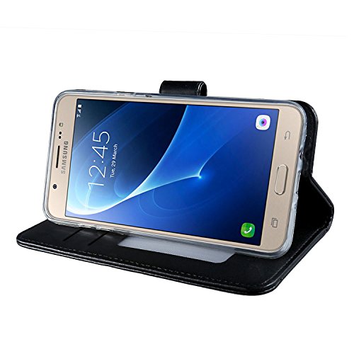 Custodia Samsung Galaxy J7 2016 Cover Nero, Leathlux Puro Colore Modello Design Con Cinturino da Polso Magnetico Snap-on Book style Internamente Silicone TPU Custodie Case in pelle Protettiva Flip Case per Samsung Galaxy J7 (2016) J710F J710FN 5.5"