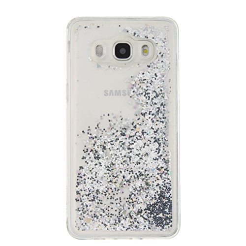 Custodia per Samsung Galaxy J5 2016 Cover Libro Liquid,SKYXD Cover 3D Trasparente Brillantini Liquido Glitter Strass Colorate Antiurto Silicone Morbida Coperture Protettiva Gel TPU Oro Argento Lucido Flusso Liquidi Sabbia Posteriore Custodia Resistente per Samsung Galaxy J510/J5 Case Shell con Brillante Spina Della Polvere e Elegante Stilo (Argento)