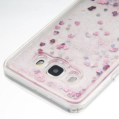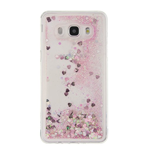 Custodia per Samsung Galaxy J5 2016 Cover Libro Liquid,SKYXD Cover 3D Trasparente Brillantini Liquido Glitter Strass Colorate Antiurto Silicone Morbida Coperture Protettiva Gel TPU Oro Argento Lucido Flusso Liquidi Sabbia Posteriore Custodia Resistente per Samsung Galaxy J510/J5 Case Shell con Brillante Spina Della Polvere e Elegante Stilo (Rosa)