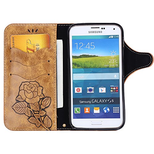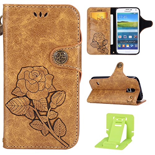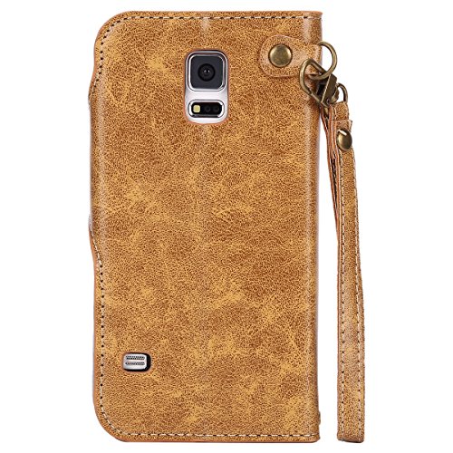 Custodia Per Samsung S5, Galaxy S5 Cover Pelle, Ekakashop Vintage Classico Puro Colore PU Leather Flip Libro Bookstyle Wallet Portafoglio Disegno Ultra Slim Completa Protezione Protettiva Cover Case Custodia Cassa per Samsung Galaxy S5 i9600 con 1x Kickstand (color random), Cachi