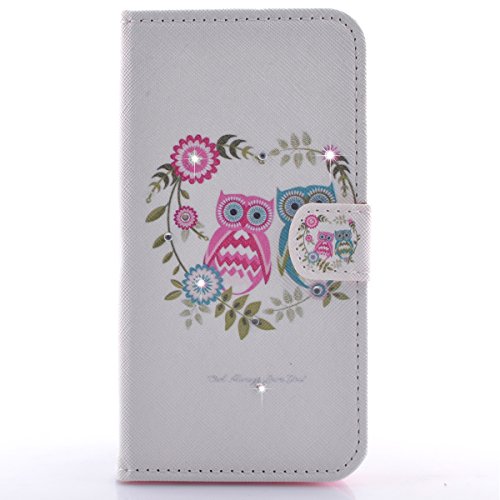 Custodia Samsung Galaxy S7, Cover Samsung Galaxy S7 in Pelle, ISAKEN Lusso Elegante Diamanti Stile Flip PU Pelle della Protezione Portafoglio Cuoio borsa Libro Wallet Supporto Stand e Porta Carte Integrati con Magnetico Case Cover per Galaxy S7 - cartoon gufi coppia
