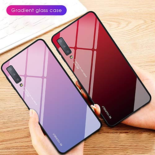 Custodia per Samsung Galaxy A7 2018 Cover Protettiva in Gradient 9H Ultra Clear Bumper Vetro Temperato Cornice Paraurti in Silicone TPU Morbido per A6 (2)