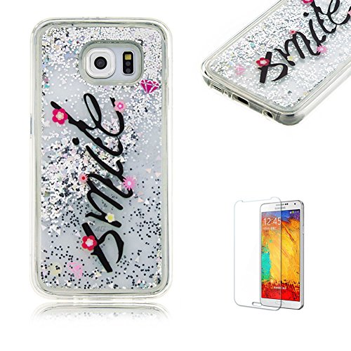 Custodia Per Samsung Galaxy S6 G920 Cover in Silicone Morbida,Funyye Brillantini Muovono Liquida Sequin Argento Glitter Flowing Quicksand 3D Creative Disegno Copertura +[Pellicola Protettiva] Sottile Gomma Gel TPU Protettivo Caso Per Samsung Galaxy G920 S6 Soft Shine Bling Liquid Case Shell Bumper - Smile