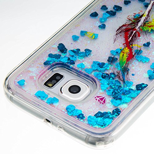 Custodia Per Samsung Galaxy S6 G920 Cover in Silicone Morbida,Funyye Brillantini Muovono Liquida Sequin Cuori Blu Glitter Flowing Quicksand 3D Creative Disegno Copertura +[Pellicola Protettiva] Sottile Gomma Gel TPU Protettivo Caso Per Samsung Galaxy G920 S6 Soft Shine Bling Liquid Case Shell Bumper - Piume Colorate