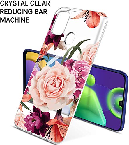Custodia per Samsung Galaxy M21 Cover Trasparente TPU Silicone Morbido Copertina Fiore Rose Colorate Foglia Pattern Case Ultra Sottile Antiurto Galaxy M21 Protettivo Shell (2)