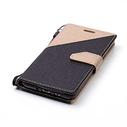 Custodia Samsung Galaxy J5 2016 Cover Samsung J510,Ukayfe Stitching Colore Flip Case Cover per Samsung Galaxy J5 2016 Samsung J510,Samsung Galaxy J5 2016 Samsung J510 Lussuosa Astuccio Custodia Cover [PU Leather] [Shock-Absorption] Protettiva Portafoglio Cover Custodia Giuntura da Polso Foglio con Super Sottile Morbido Silicone TPU Interno Case e Porta carte di credito Portafoglio Custodia Protettiva Cover Copertura Tutta Potente per Samsung Galaxy J5 2016 Samsung J510-Nero + Oro