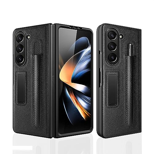 Custodia per Samsung Galaxy Z Fold5 Cover con Protezione Dello Schermo Anteriore, Cover con Slot S Pen e Cavalletto Integrato Antiurto Custodie Protettiva per Galaxy Z Fold5-Nero [Non Include S Pen]