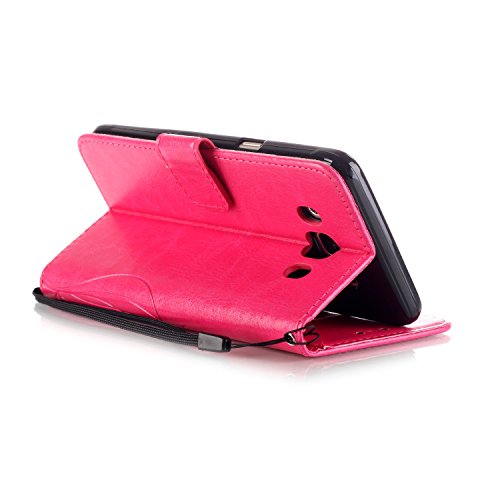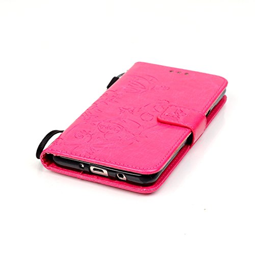 Custodia Per Samsung Galaxy J5 2016,Funyye Per Samsung J5 (2016 Modello) Pelle Libro Protettiva Copertura Con Cordino Shell Supporto Stand Porta Carte Portafoglio Flip Wallet Cover Chiusura Magnetica Proteggi Caso Elegante Fiori e Farfalle -Fucsia