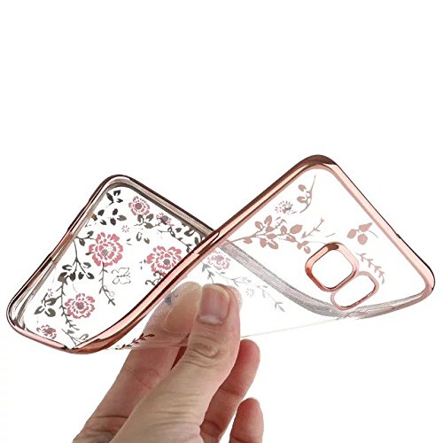 Custodia Per Samsung Galaxy S6 G920,Funyye Morbida Sottile TPU Gel Silicone Brillare Strass Cover Originale Elegante Protettiva Caso Trasparente Chiaro Antiscivolo Luce Placcatura Slim Thin Bling Glitter Skin Shell Copertura + Pellicola Protettiva Per Samsung G920 Galaxy S6 Soft Bumper Case - Oro Fiore Rosa