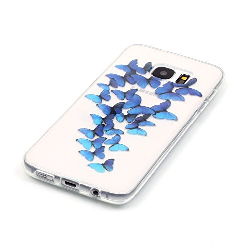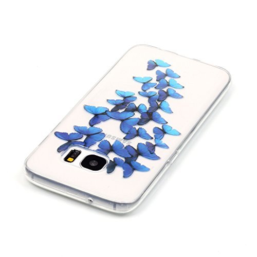 Custodia per Samsung Galaxy S7 Edge G935,Funyye Morbida Sottile TPU Gel Silicone Cover Originale Antiscivolo Elegante Protettiva Caso Chiaro Copertura Slim Thin Skin Shell + Pellicola Protettiva per Samsung Galaxy S7 Edge G935 Trasparente Soft Bumper - Blu Farfalla