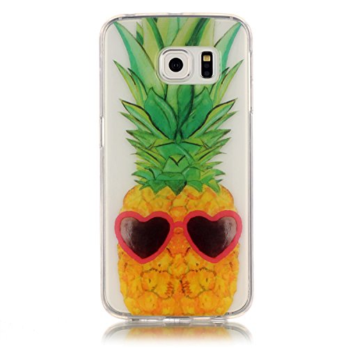 Custodia per Samsung Galaxy S6 Edge,Funyye Morbida Sottile TPU Gel Silicone Cover Originale Antiscivolo Elegante Protettiva Caso Chiaro Copertura Slim Thin Skin Shell + Pellicola Protettiva per Samsung Galaxy S6 Edge G925 Trasparente Soft Bumper - Occhiali Ananas