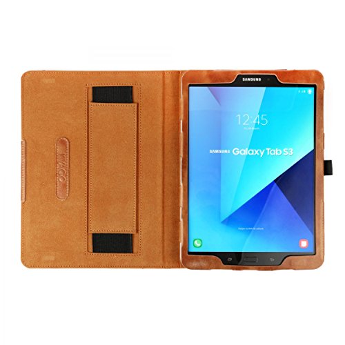 Custodia per Tab S3 9.7 Samsung Galaxy in pell, Kvago Tri-Fold Pu pelle Slim caso Smart Cover - Folio con sospensione/riattivazione per Samsung Galaxy Tab Tablet 9,68''/24.58 cm T825/T820N S3, Marrone