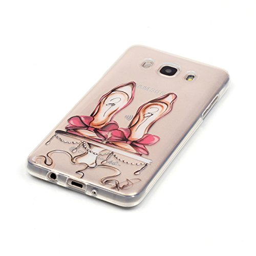 Custodia per Samsung Galaxy J7 (2016 Model),Funyye Morbida Sottile TPU Gel Silicone Cover Originale Antiscivolo Elegante Protettiva Caso Chiaro Copertura Slim Thin Skin Shell + Pellicola Protettiva per Samsung Galaxy J7 2016 J710 Trasparente Soft Bumper - Scarpe con Tacco Rosso