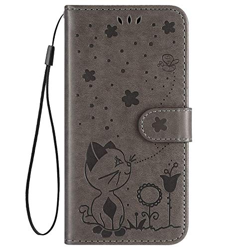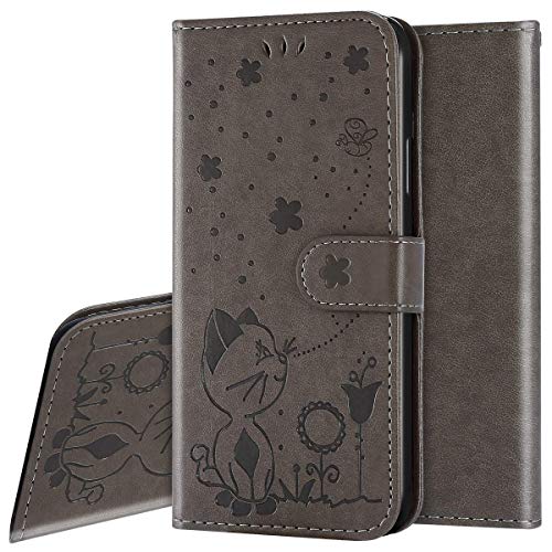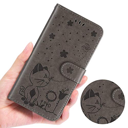 Custodia per Samsung Galaxy A6 2018,PU Pelle Portafoglio Wallet Cover Flip Libro Gatto Cartoon Disegno Fiore Case Porta Carte Antiurto TPU Bumper Protettiva Cover per Samsung Galaxy A6 2018,Grigio