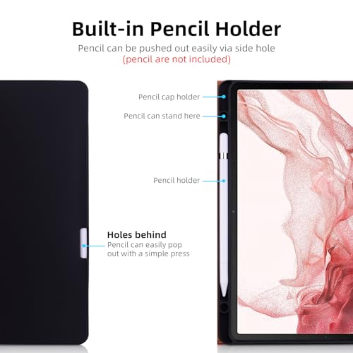 【Buona finitura】-- La custodia protettiva per Samsung Galaxy Tab S9 Plus/S8 Plus/S7 Plus/S7 FE 12.4'' è realizzata in pelle sintetica di alta qualità e TPU morbido, con finitura squisita e piacevole al tatto, rivestimento interno antiscivolo e retro rigido.Ritagli precisi e design consentono un facile accesso a tutte le porte, sensori, altoparlanti, telecamere.