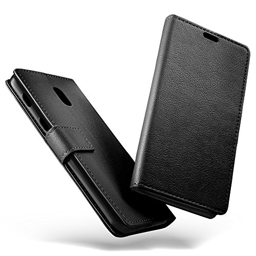 SLEO Custodia per Samsung Galaxy J6 2018, [Premium Portafoglio Protettiva] Wallet Cover per Samsung Galaxy J6 2018, 2-Scheda Slot, [PU Pelle] Morbido Impermeabile Antipolvere Protezione - Nero