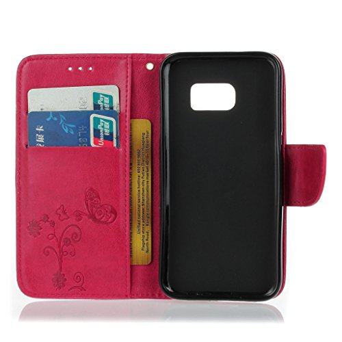 Custodia Samsung Galaxy S7, con protezione per lo schermo in vetro temperato] antigraffio, fatcatparadise (TM) Custodia posteriore in silicone morbido, elegante vintage fiori pressati Bloom Motivo Retro Magnetico Premium PU Portafoglio in pelle porta carte di credito Fashion Ultra Sottile Custodia Protettiva per Samsung Galaxy S7